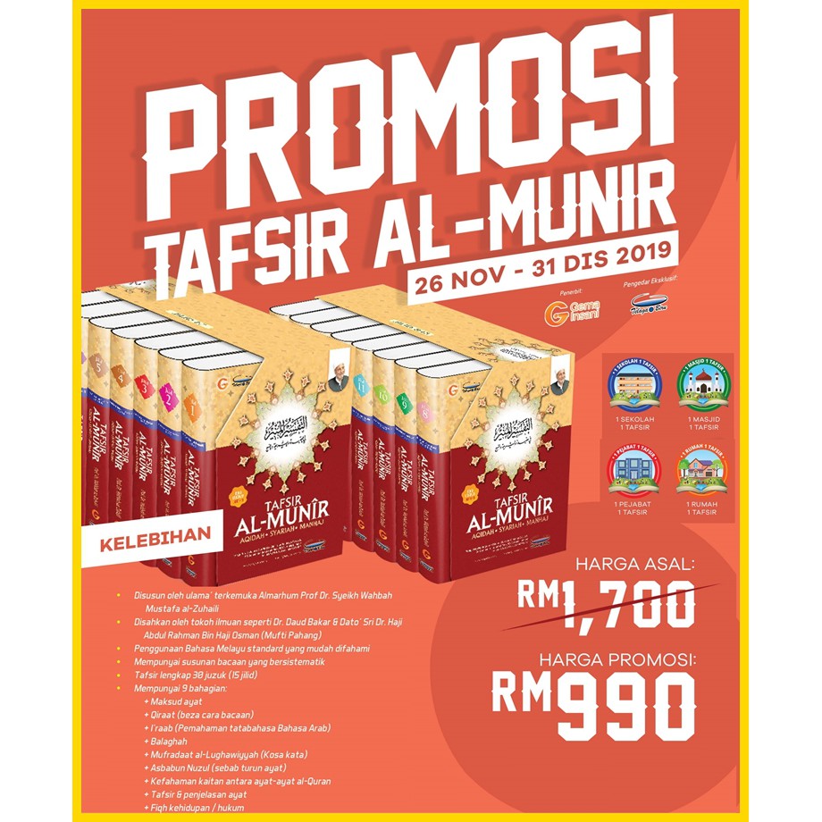 Ia merupakan tafsir kontemporari yang sangat. Meskipun kitab ini besar, namun untuk manfaat pembaca dan umat. التفسير المنير في العقيدة والشريعة والمنهج Tafsir al munir ini sangat laris dan digemari sebagai rujukan dalam bidang tafsir di timur tengah dan negara negara di jazirah arab. Buku tafsir al munir lengkap ini terdiri dari 15 jilid dengan penerbit.
